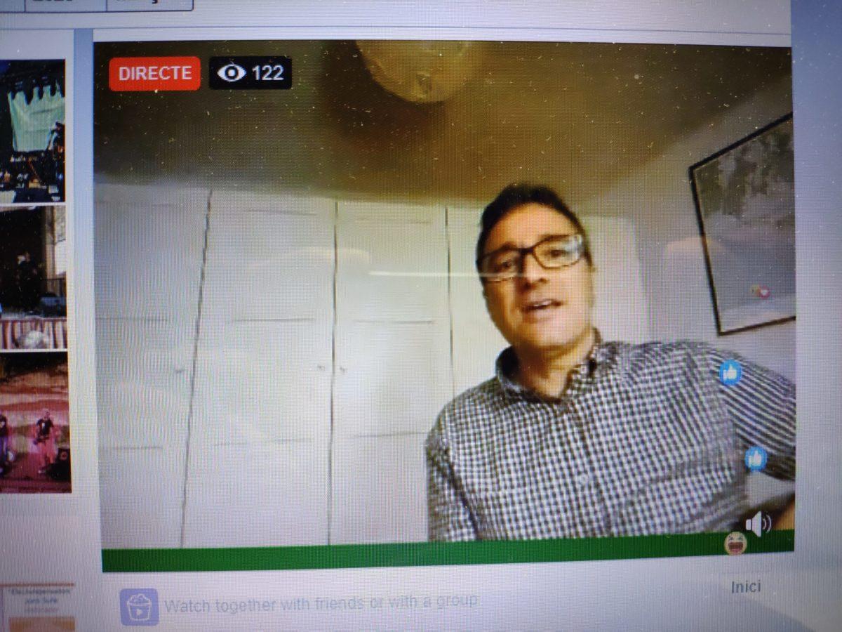 El vídeo de diumenge emès a través de Facebook Live el va deixar penjat al seu perfil i ja acumula més de 1.400 reproduccions. A causa del mal temps, dilluns va haver de tocar des del seu despatx, però si el temps acompanya ho farà sempre des del terrat, per poder interaccionar amb els veïns dels carrers propers. “A través de Facebook m’han seguit gent de Torredembarra, de pobles del Baix Gaià però també des d’altres països”, comenta. Dilluns vam poder escoltar-lo cantar i parlar en anglès.