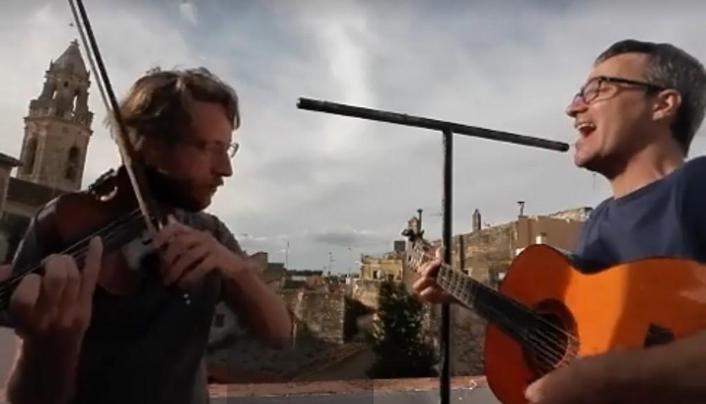 Foto: Jordi Suñé, en un dels concerts, acompanyat d’un altre músic baixgaianenc, Sergi Clofent. / CEDIDA